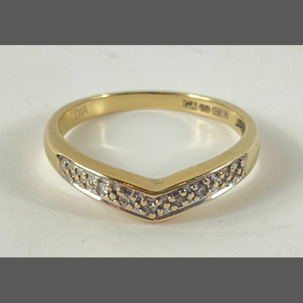 A 375 marked yellow gold V-shaped diamond set ring size K, gross weight 1.58gms