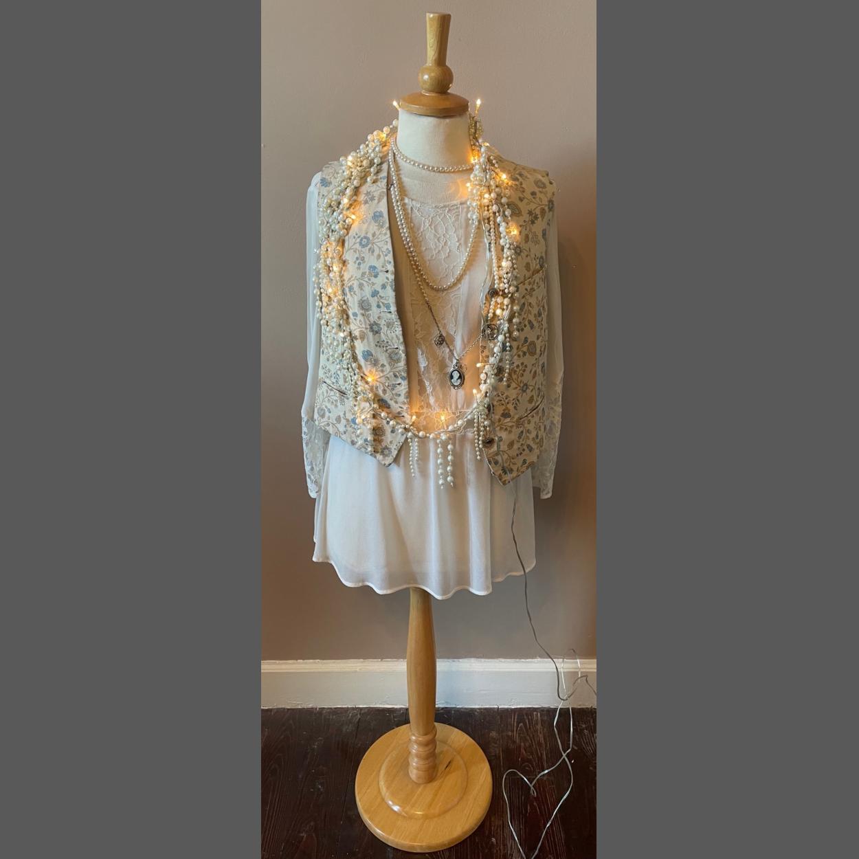 QUALITY! BOUTIQUE bought from YORK a Substantial handmade white metal TORQUE in leaf form with a nice sparkly white stone - width 13cm