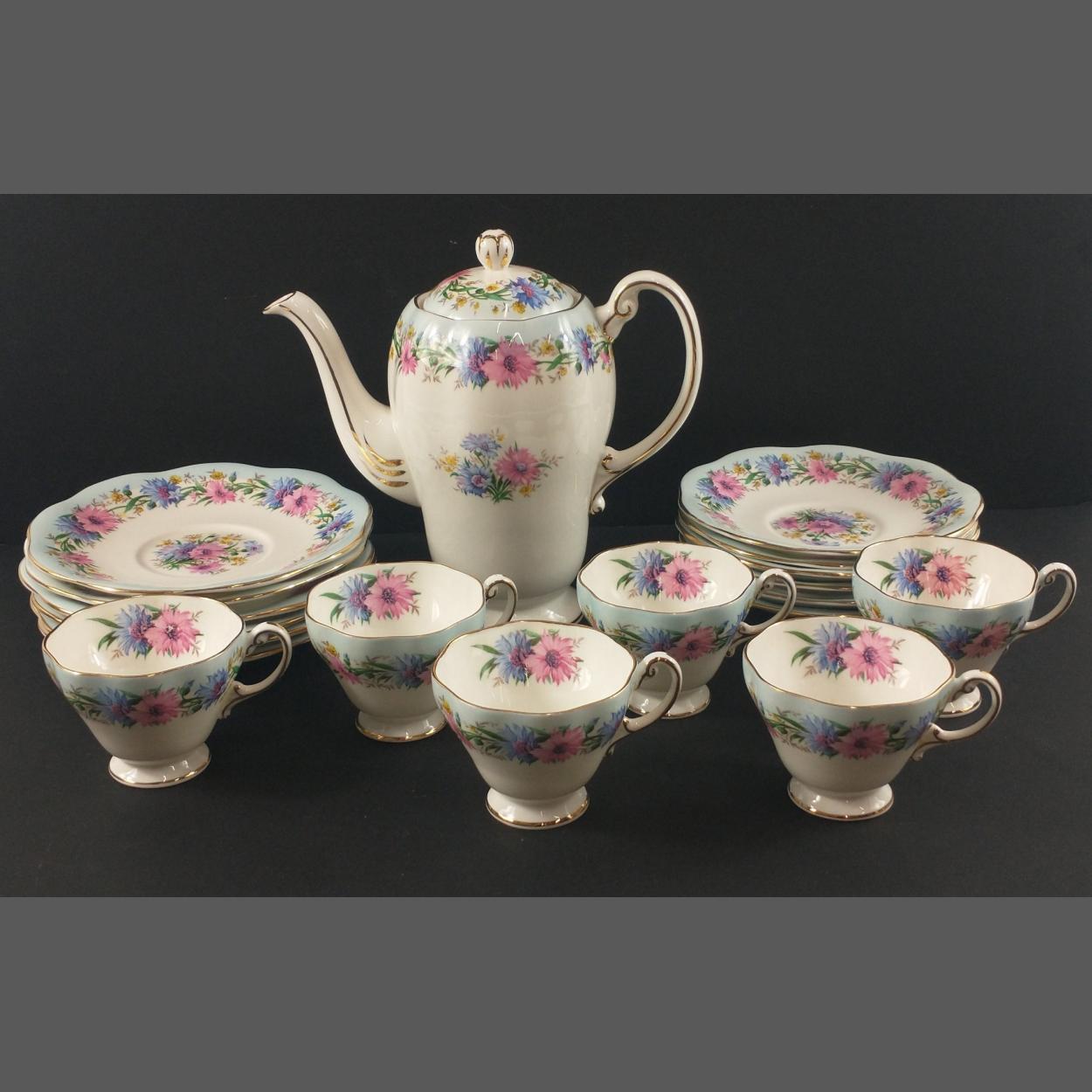 Imagine warm mince pies in front of a roaring fire using this ruby-coloured china - a WEDGWOOD WHITEHALL powder ruby tea service and part dinner sevice to include 6 cups, 6 saucers (15cm), 6 plates (15cm), 2 square cake plates (24x24cm), a milk jug, a sugar bowl (stamped Coronation Year 1954-1954 to base), 6 twin-handled soupbowls with underplates (16cm dia), 6 plates (23cm), 6 plates (27cm) (2 with very light scratch mark)