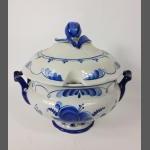 A large Russian GZHEL blue and white porcelain tureen standing approx 34cm high, no chips, cracks or visible damage