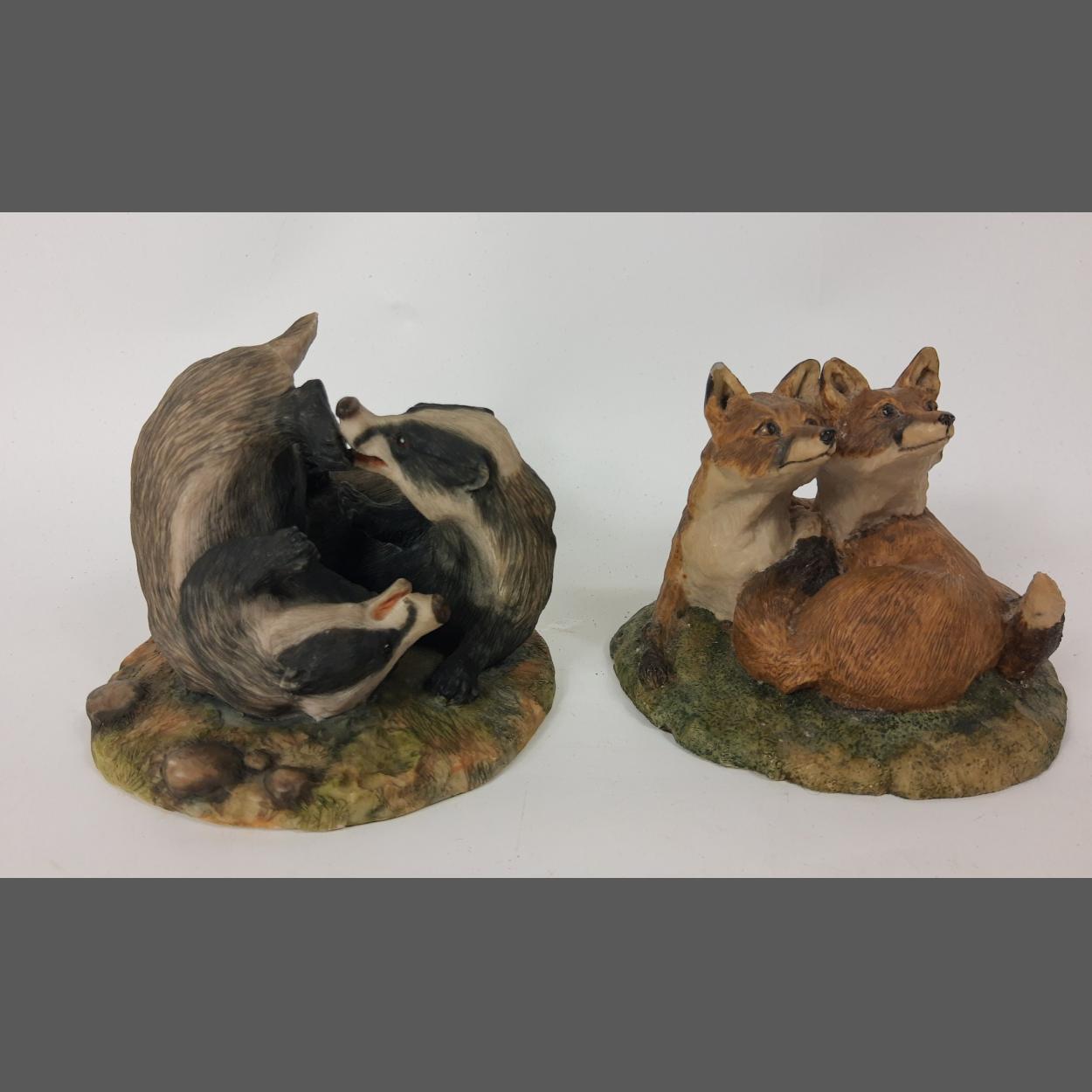 Two early BORDER FINE ARTS groups from 1976 and 77 signed by HAYTON one of foxes (slight chip from one ear) and badgers (no visible damage)