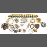 A superb collection of high end costume jewellery to include a Scottish MIRACLE brooch with impressive Cairngorm centre ringed with polished stones, a beautiful Victorian pinchbeck brooch, a lovely small Bumble Bee brooch, a 830 Silver filigree brooch by M Hammer (pin broken). Twenty super little items in all.