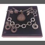 An OLA GORIE box containing a white metal pendant and chain, a Swarovski set of matching pendant, earrings and bracelet and 2 further pairs of earrings