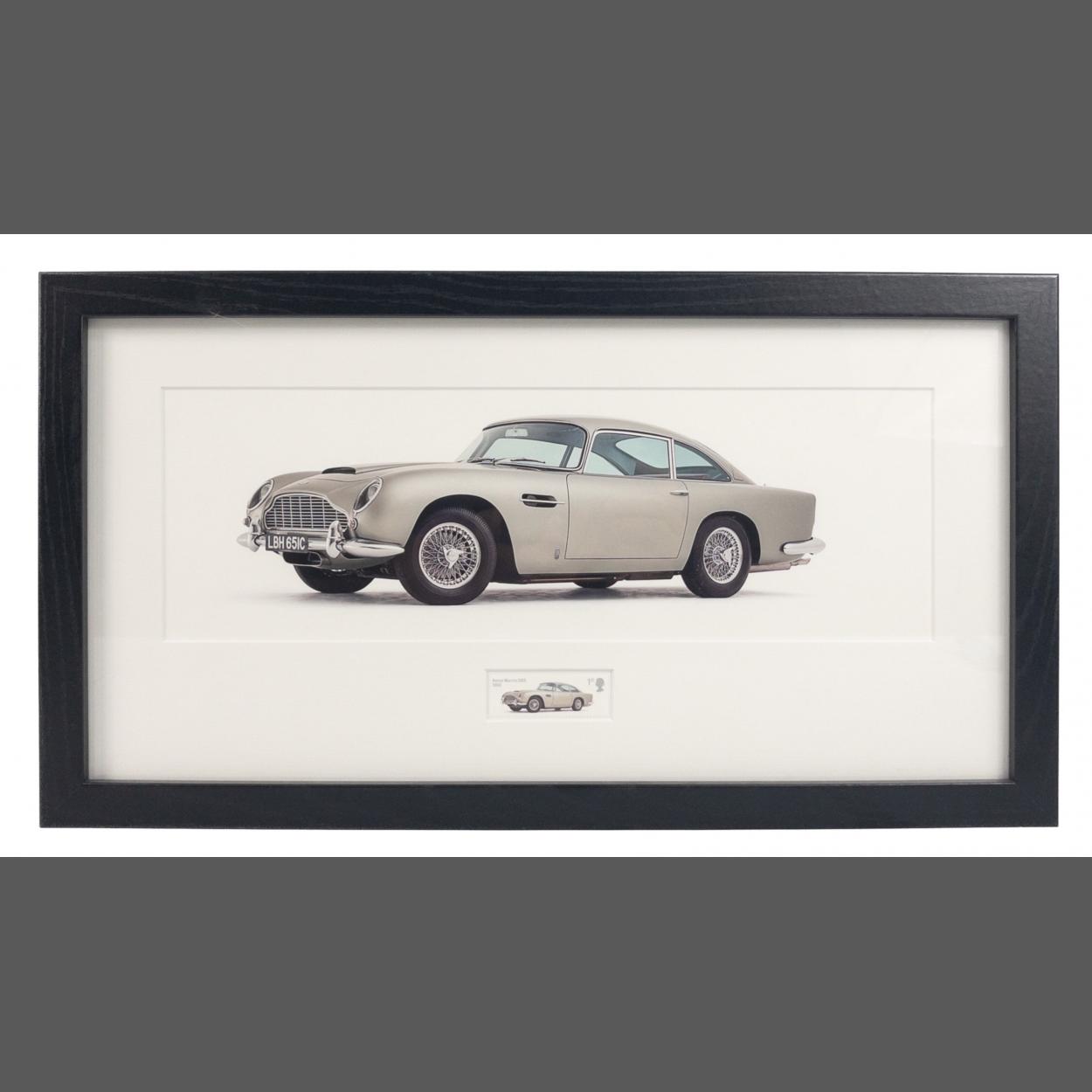 ROYAL MAIL framed first class stamp of an JAMES BOND'S ASTON MARTIN DB5 1963 from the British Auto Legends series, frame size 50x28cm