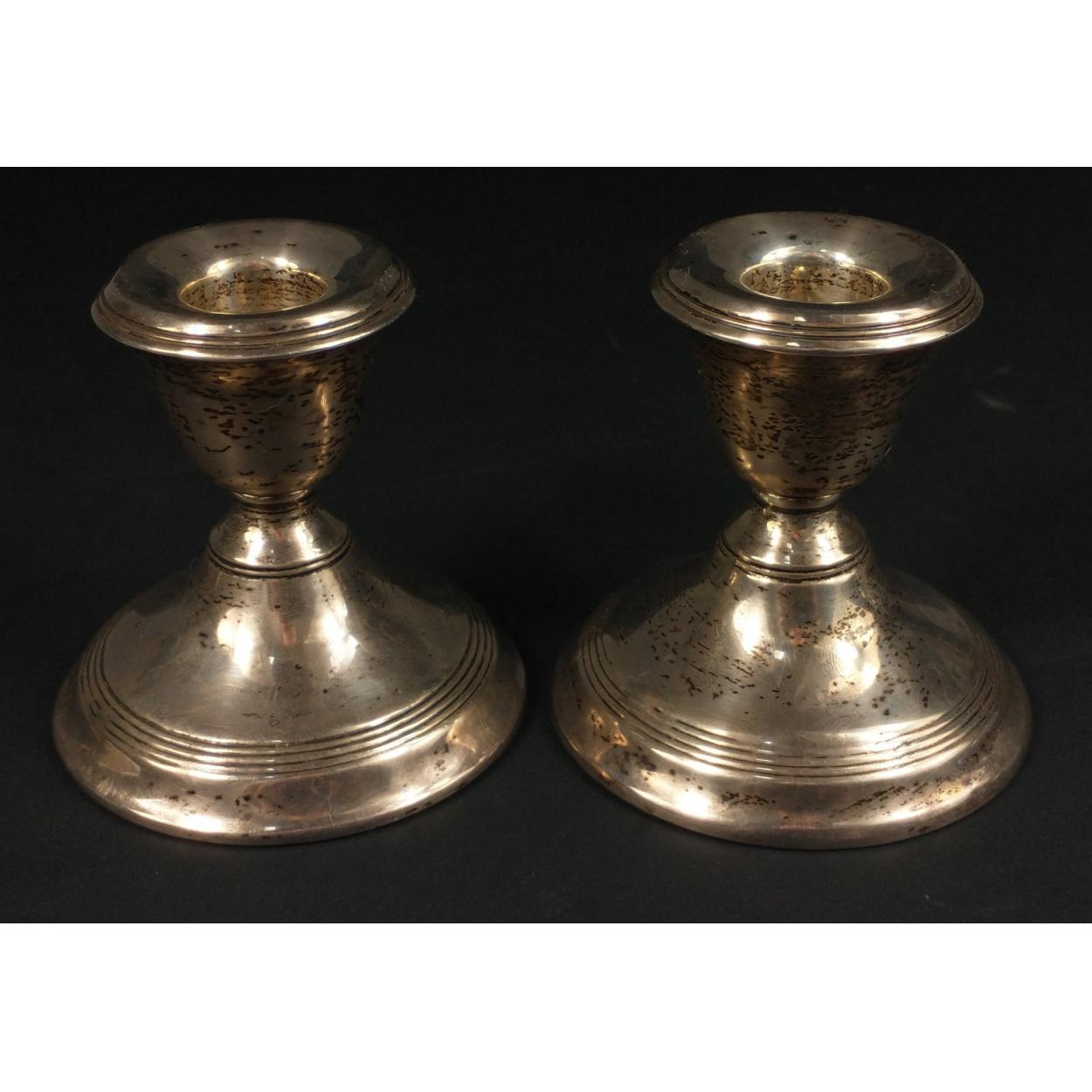 A pair of small silver table candlesticks hallmarked Birmingham 1919, weight 351g approx