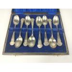 A boxed set of 12 monogrammed silver teaspoons and pair of tongs, hallmarked Sheffield 1932, by Viner's, weight 182g