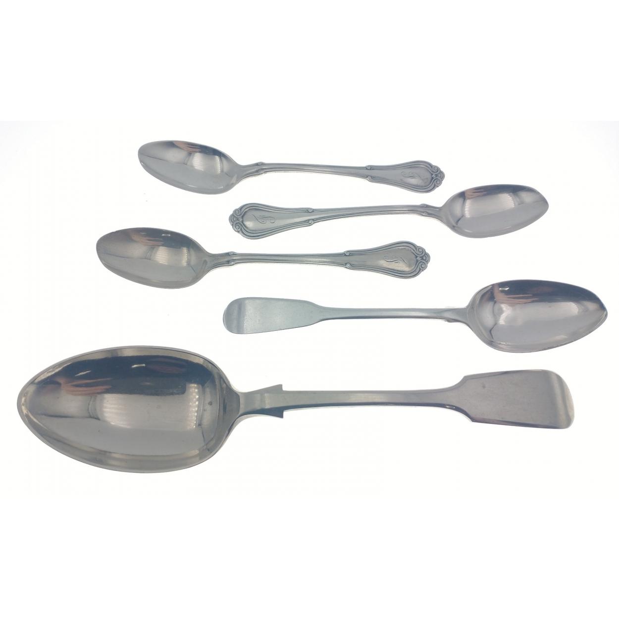 A small collection of silver spoons to include one larger ARGENTINA SILVER spoon at 53g and three 1890 hallmarked teaspoons with a total of approx 45g, also included an attractive 1818 Solomon Royes teaspoon at 16g