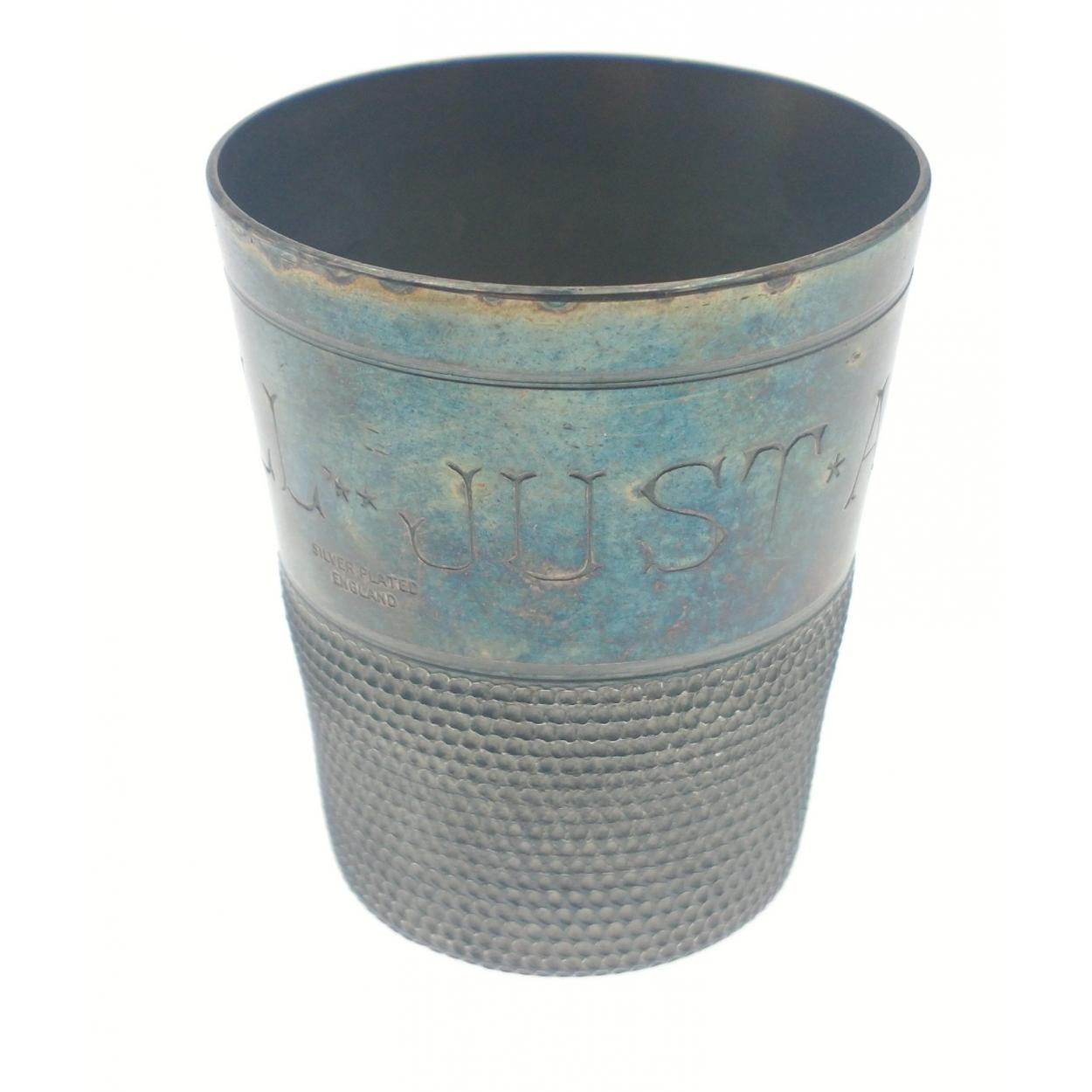 A silver plated stamped INTERESTING 'JUST A THIMBLE FULL 'tot' measure cup - dimensions 4cm height x 3.75cm diameter approx