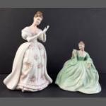 Two attractive figurines being ROYAL DOULTON Summer Rose (HN3309) 21cm tall and COALPORT Justine 14cm tall. No damage to either piece