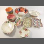 A mixed ceramics lot to include a colourful Italian fruit bowl (28cm), ROYAL WINTON sandwich plates, MALING Lustre, etc