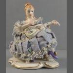 An intricate and pretty IRISH DRESDEN porcelain figurine ''SIMONE'' 11cm tall and in good condition with no damage.