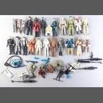 A super collection of playworn mainly STAR WARS figures. All marked Hong Kong between 1977 -1983. All in playworn condition including R2D2. Lot includes several guns etc. and some interloper figures.