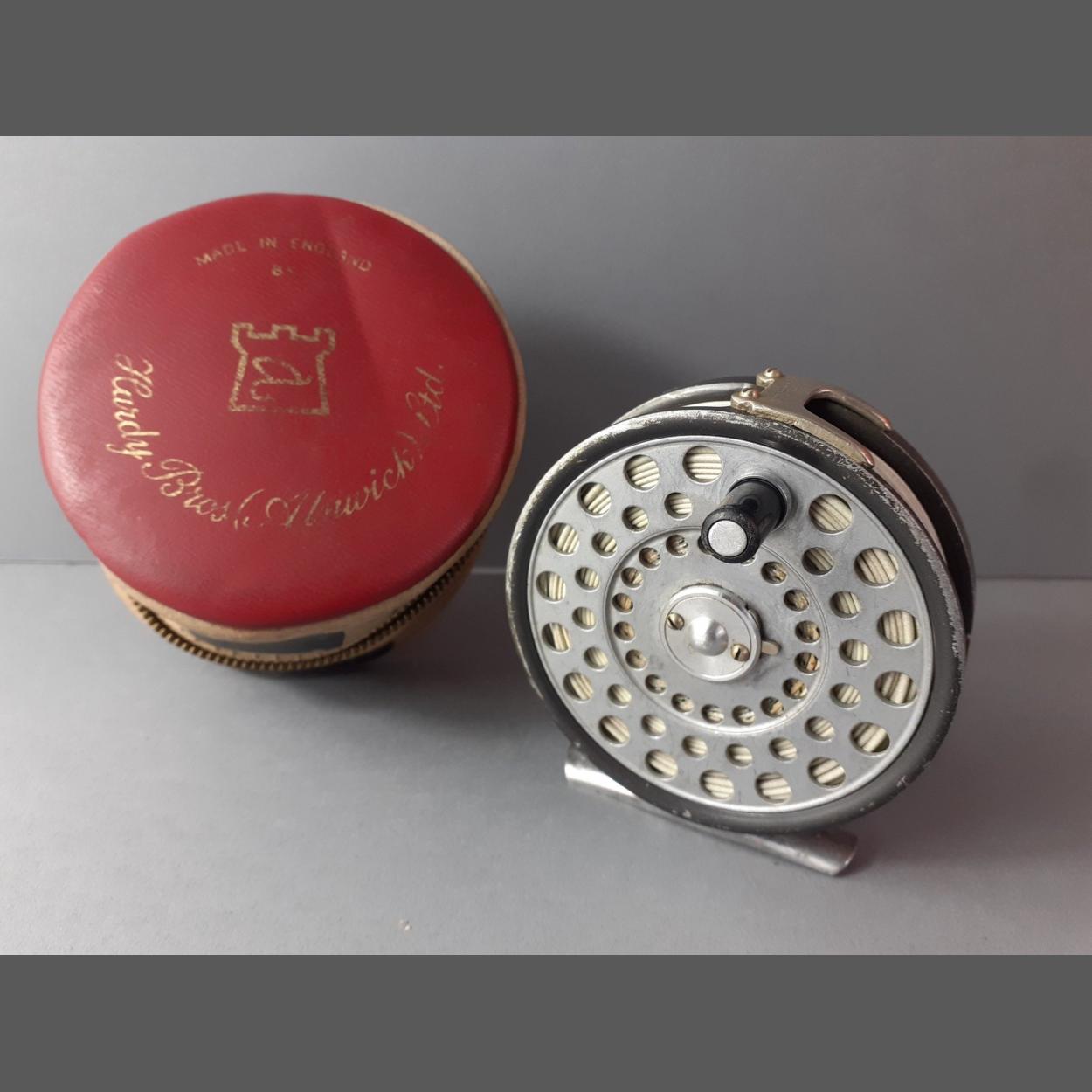 A HARDY BROS of ALNWICK L.R.H. lightweight fishing reel, Brit registered design 895921 in original case, case and reel with wear from use, ratchet action good