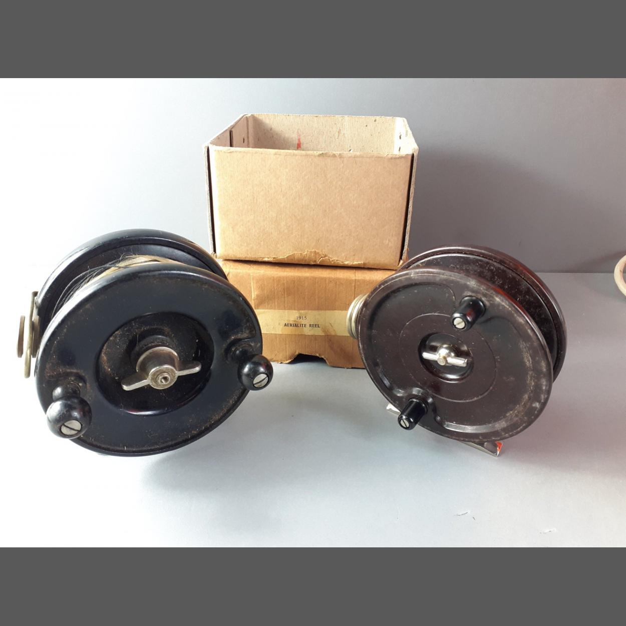 A boxed ALLCOCK aerialite centre pin reel in generally good used condition and another large ALLCOCK aerialite sea reel 4 inch which also appears to be in good condition
