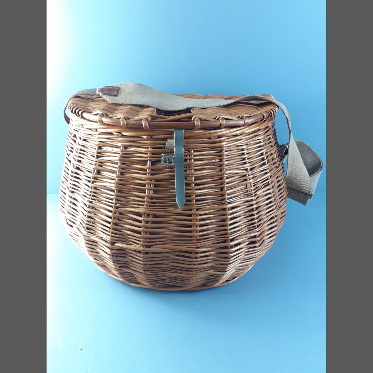 A good quality wicker fishing creel in good condition 30cmH x 37cm W x 24cmD