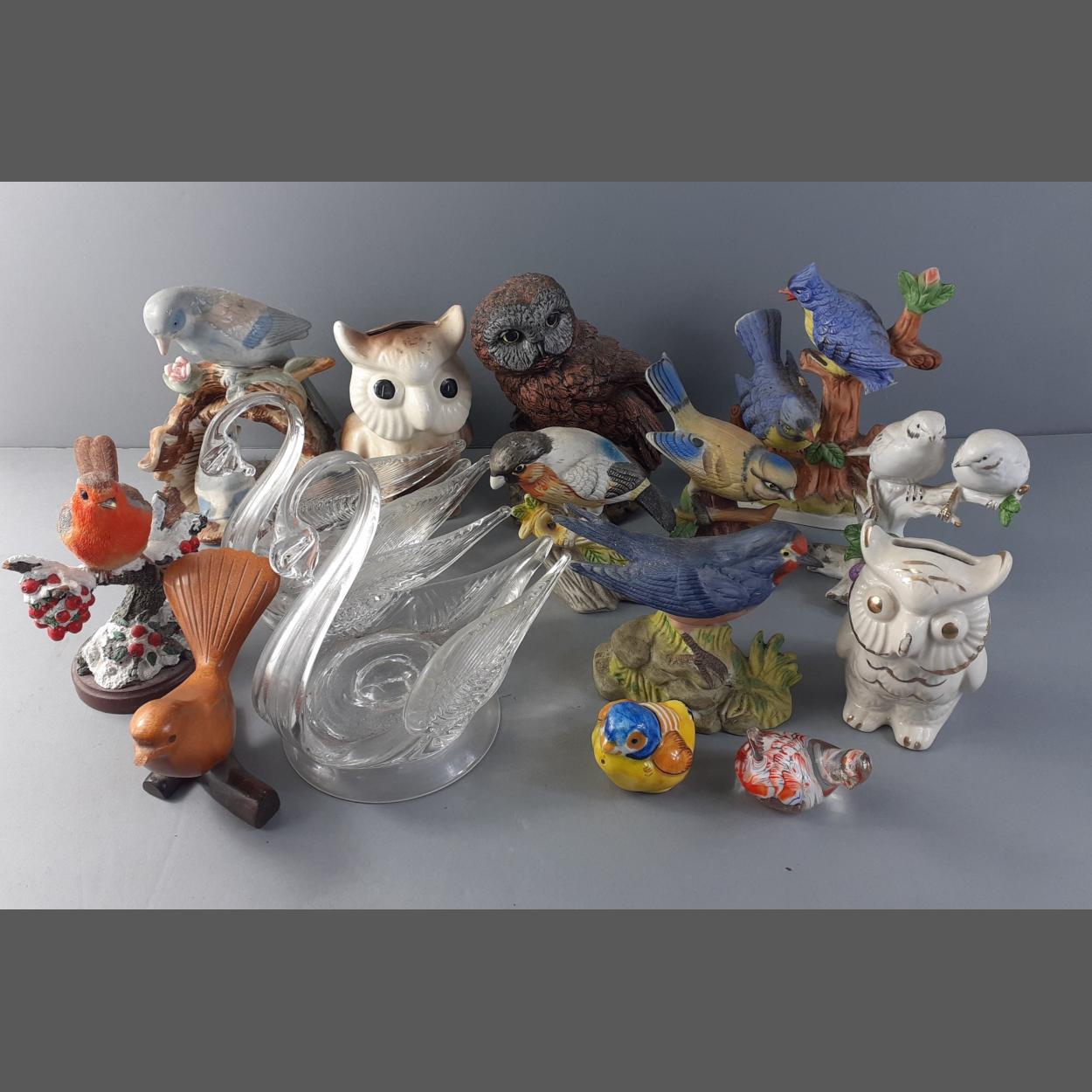 A pretty lot of mainly ceramic bird ornaments which all appear to be in good condition. Lot includes some pretty owls and others. Mostly without makers' marks but some very attractive items.