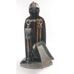 A lustre coated knight in armour fireside companion set standing 37cm high