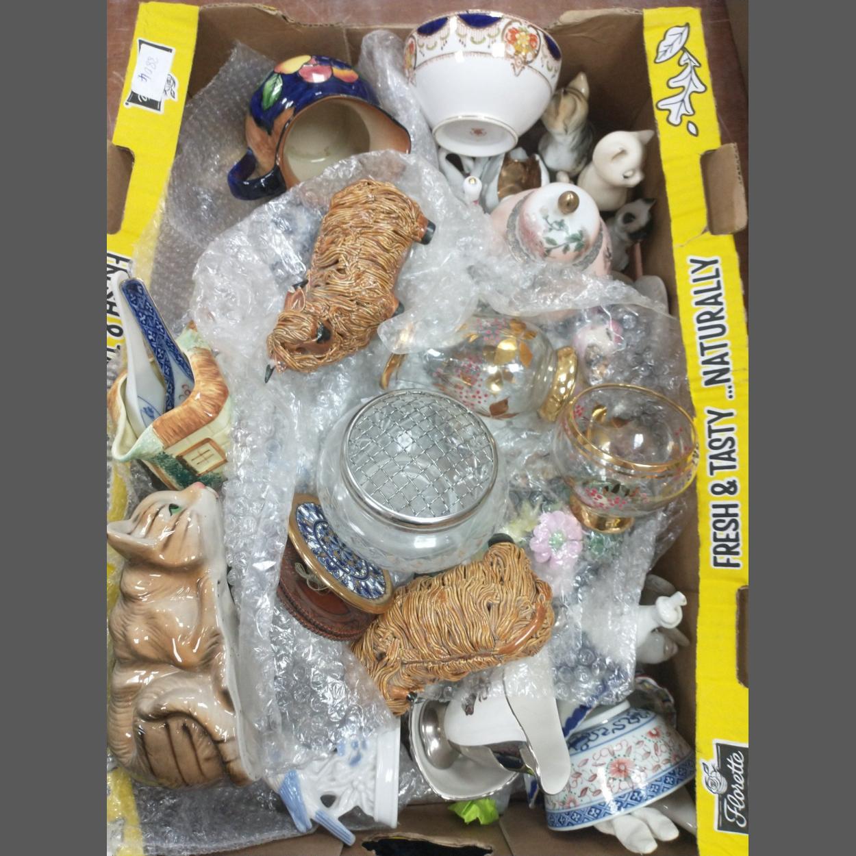 A mixed box of ceramics to include small plates, figurines, vases and much more