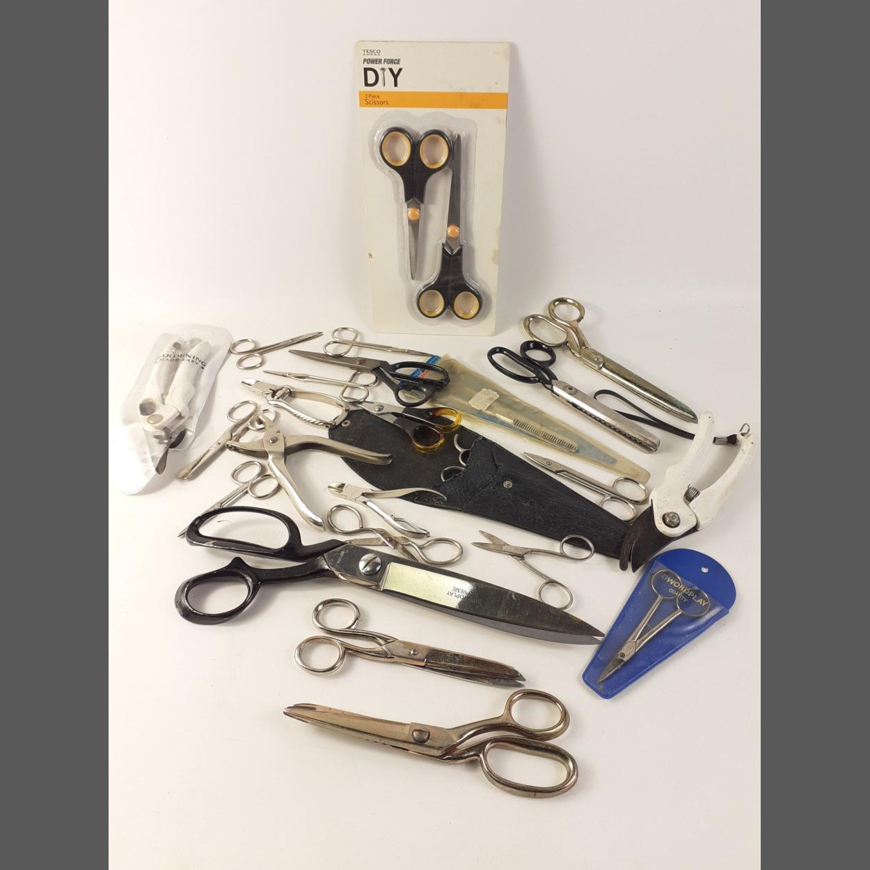 The cutting edge - a small selection of tools to include seamstress's scissors, pinking shears, secateurs, a leather hole punch, etc