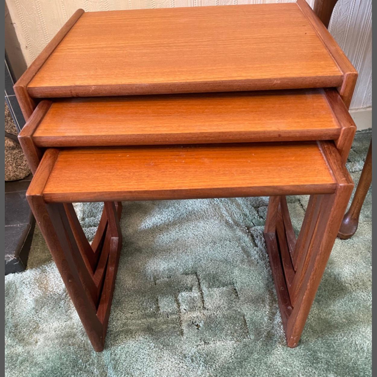A charming teak trio G-Plan style (label missing) nest of low side tables