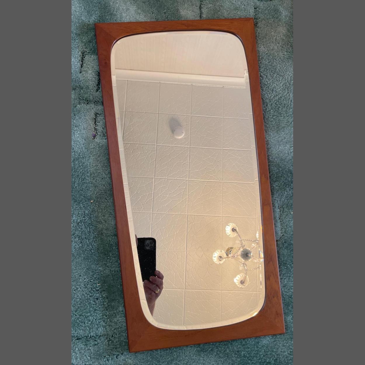 A RETRO teak wall mirror - 70cm height x 35cm wide approx