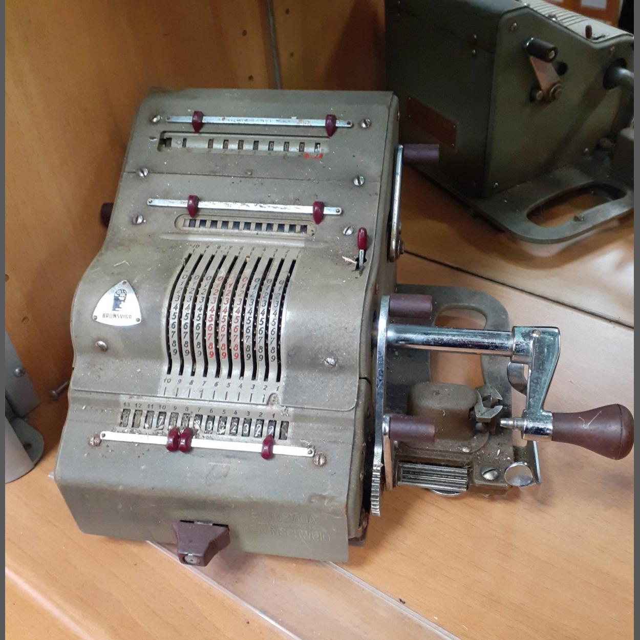 A Vintage BRUNSVIGA 13RK solid desk calculator in dusty as found condition. 1950s retro look, appears complete but unsure if currectly operational.