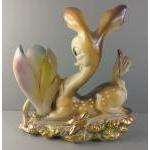 A very unusual BAMBI style vintage flower or spill vase. Very Kitsch style with Bambi having elongated limbs and over-attenuated neck and ears. The whole with a gilt finish is really rather appealing and is in good condition, one very minor chip to the rear of the ear noted. Stands 34cm tall.