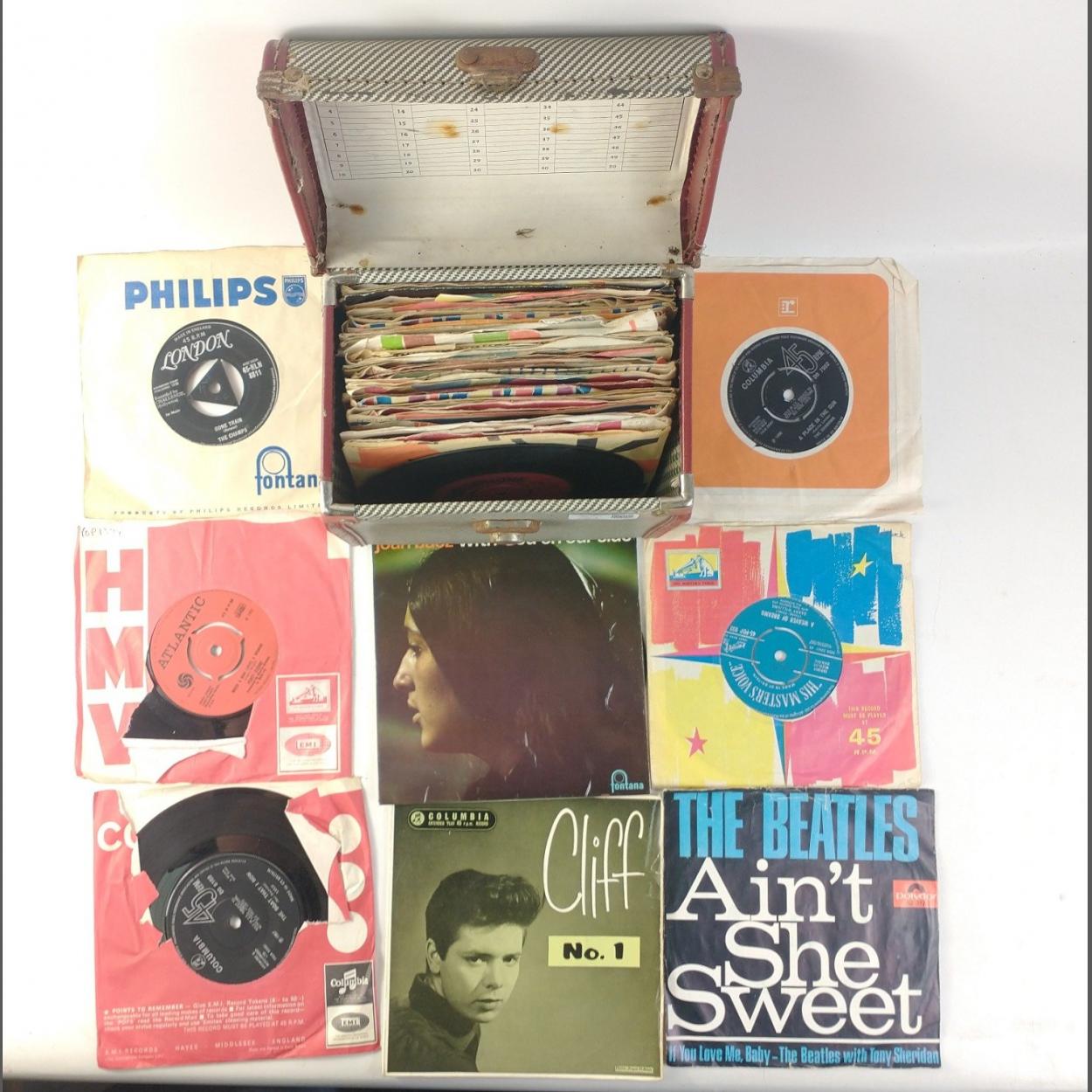 An older collection of 45RPM single vinyl records. Appears to be all 1960s era and includes The Strawbs, Russ Conway, Elvis, Billy Fury, Michael Holliday, The Beatles and much more.