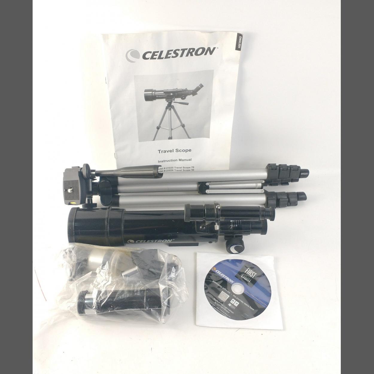 A small CELESTRON desk top travel telescope. Complete with lens, correcting lens, tripod, instructions and CD-ROM
