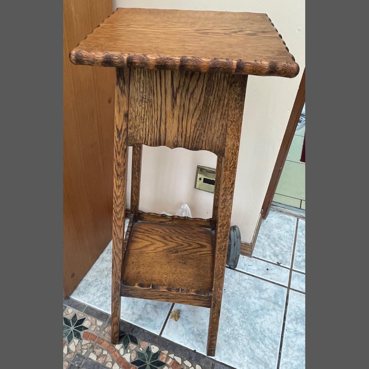 A VINTAGE nice quality! a window plant table 3ft tall approx with pie-crust edging and a second lower shelf