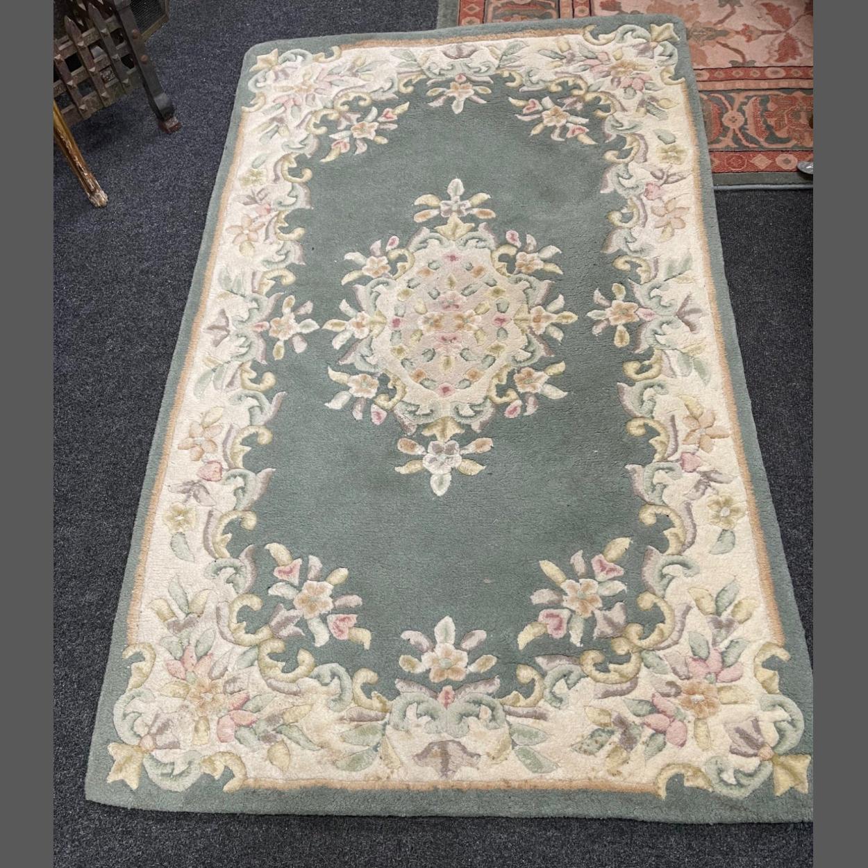 A nice quality CHINESE bottle-green base woollen rug - dimensions 5ft x 3ft approx