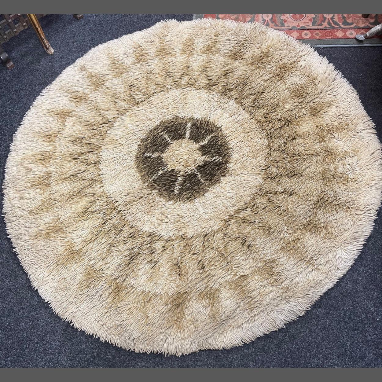 CIRCULAR shaggy-pile c1970's inspired rug - 4ft diameter approx -
