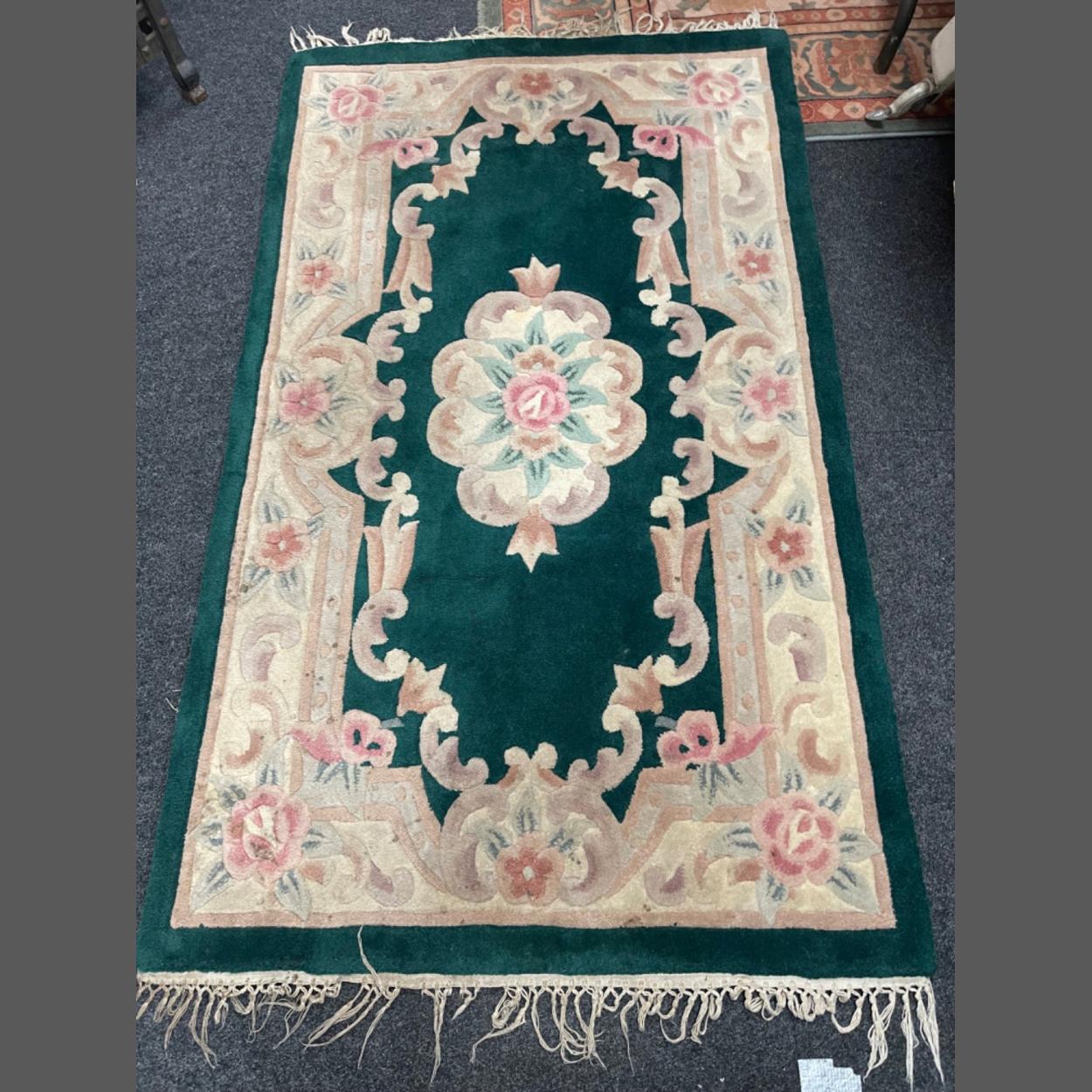 A nice quality CHINESE bottle-green base woollen rug - dimensions 5ft x 3ft approx