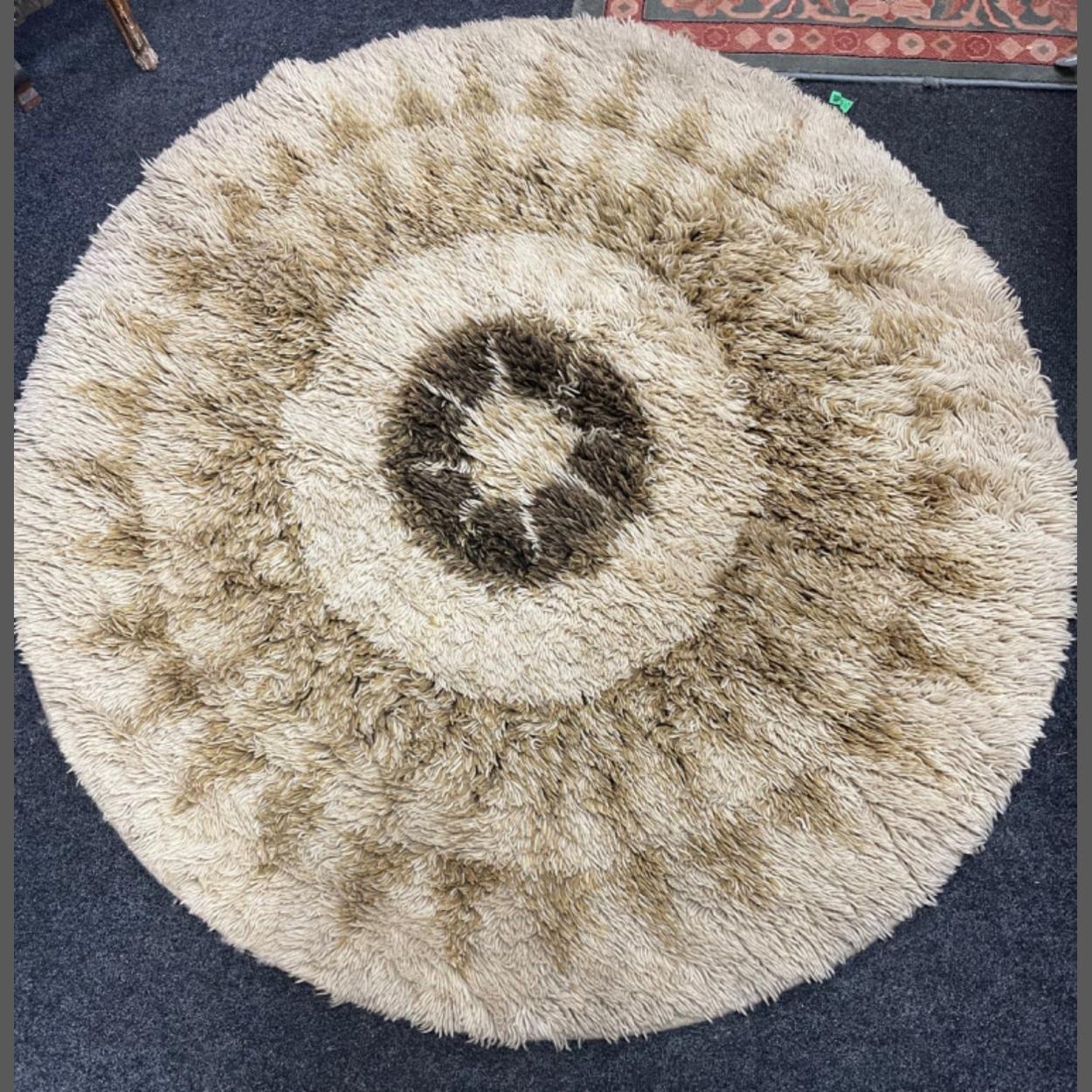 CIRCULAR shaggy-pile c1970's inspired rug - 4ft diameter approx -