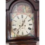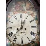 - painted clock face illustrating Flora MacDonald and Bonnie Prince Charlie meeting - also depicts the four floral emblems of Great Britain - clock fully working order with pendulum and two large cast weights - comes with original winder key and also cabinet door key - a really nice example
