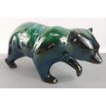 Two BLUE MOUNTAIN pottery bears. One standing and one on all fours. The one on all fours is 26cm across, the other stands 23cm and has a slight chip on the elbow.