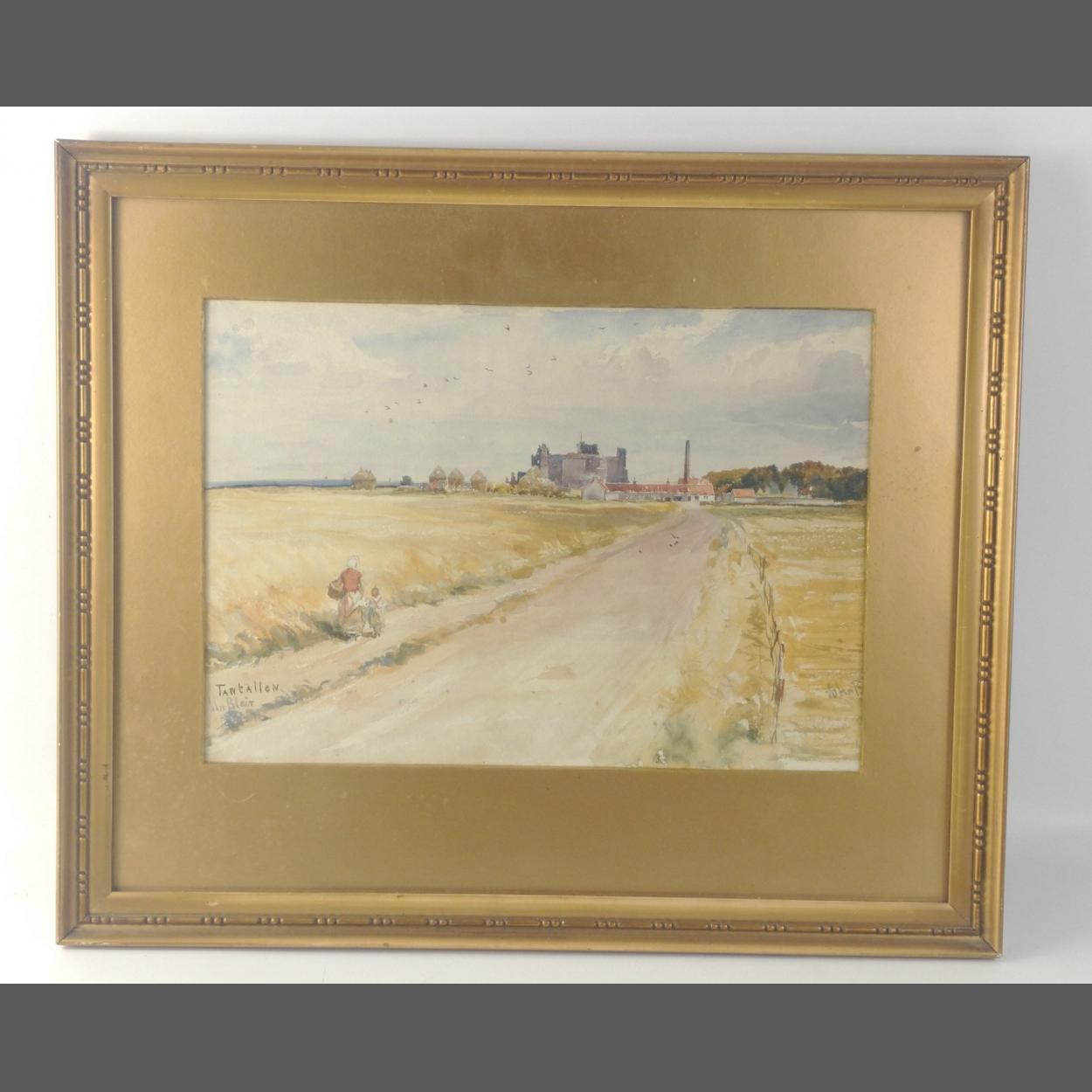 A JOHN BLAIR Watercolour of TANTALLON near North Berwick, East Lothian, Scotland. A pretty and accomplished watercolour measuring 47cm x 40cm frame size, 33 x 23cm picture. A little dirt inside the frame but picture itself is clean, warm and appealing.