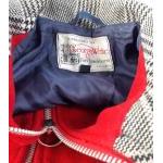 A vintage size 10, zip-up cape in red wool with houndstooth collar and pocket trim and blue lining, length 75cm approx, tailored by GEORGE WHITE, Fort Brockhurst