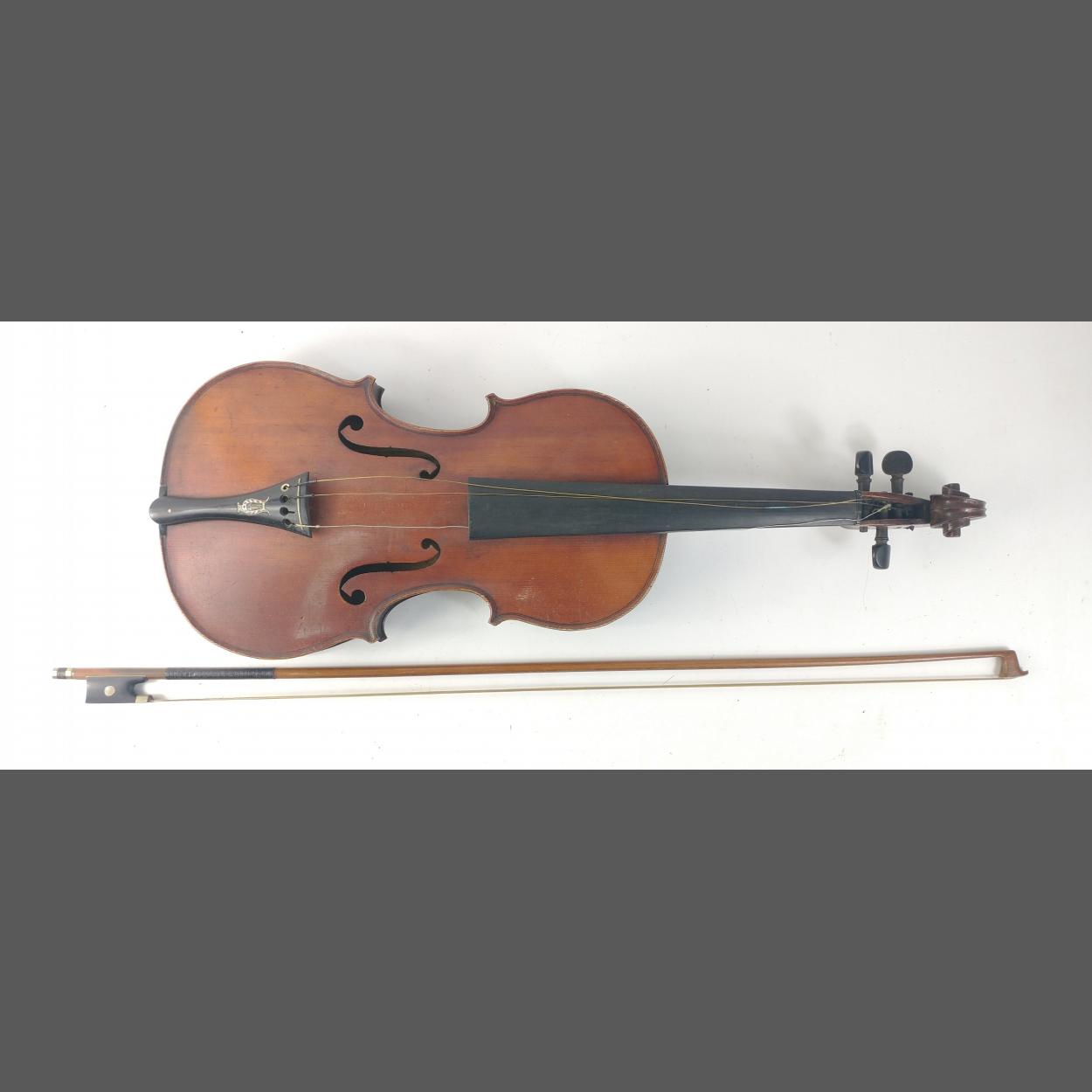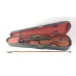 ANTIQUE French violin. J.T.L. Mirecourt "Dulcis et Fortis" c.1880 with original violin wooden case - one of the string-peg tighteners is broken, the back of the violin has a small hairline crack