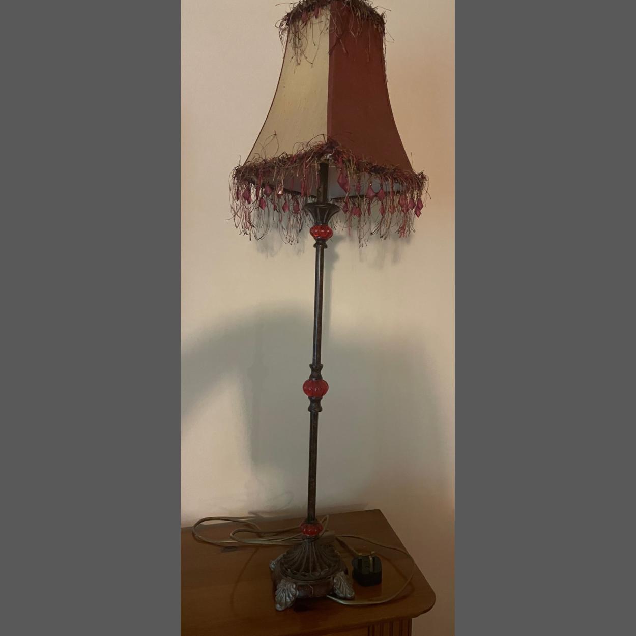 A FUN tall electric table lamp with a bejewelled shade - height 3.5ft tall approx