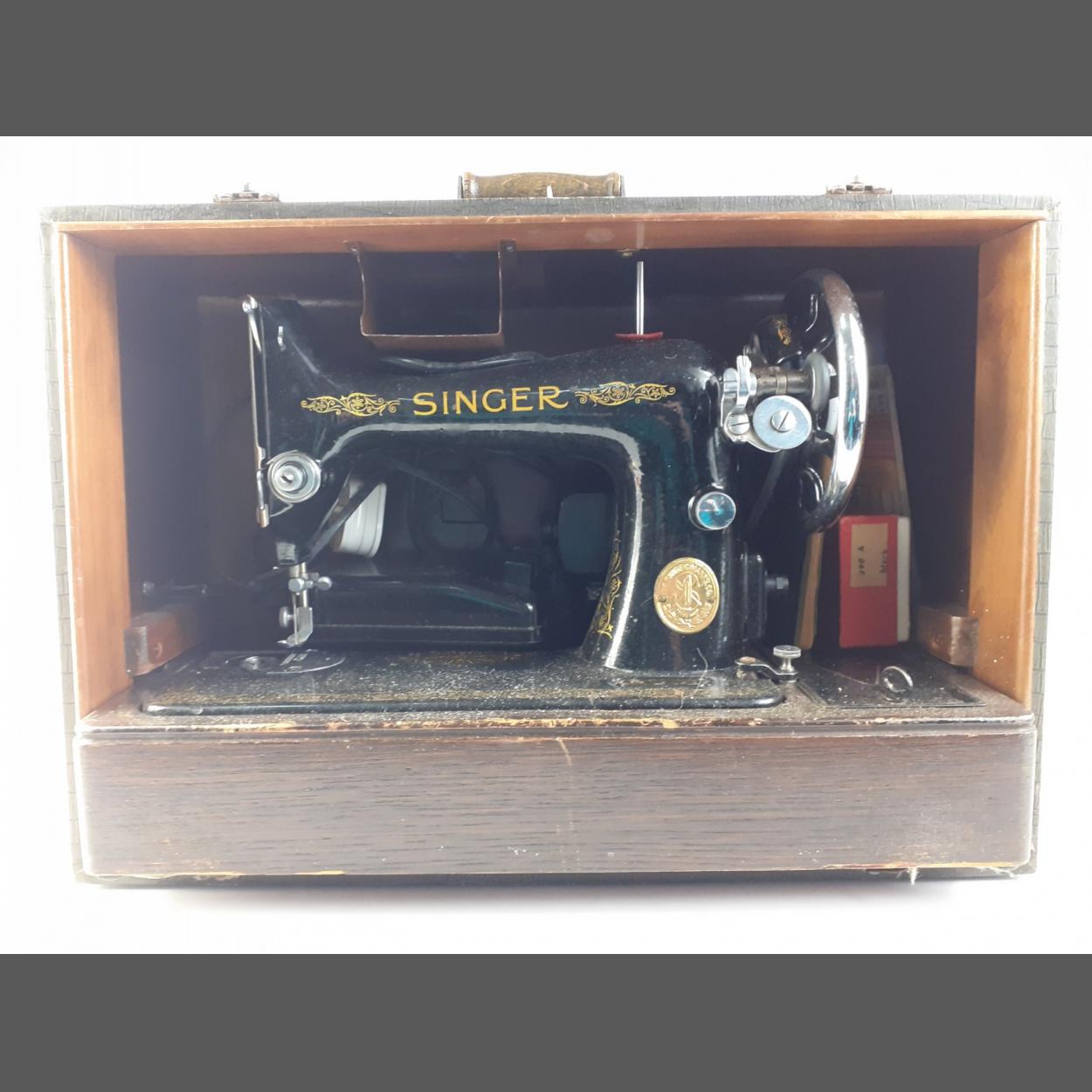 Cased SINGER sewing machine with lovely gilt lettering. Plaque on front with EE438436 dating it to 1947