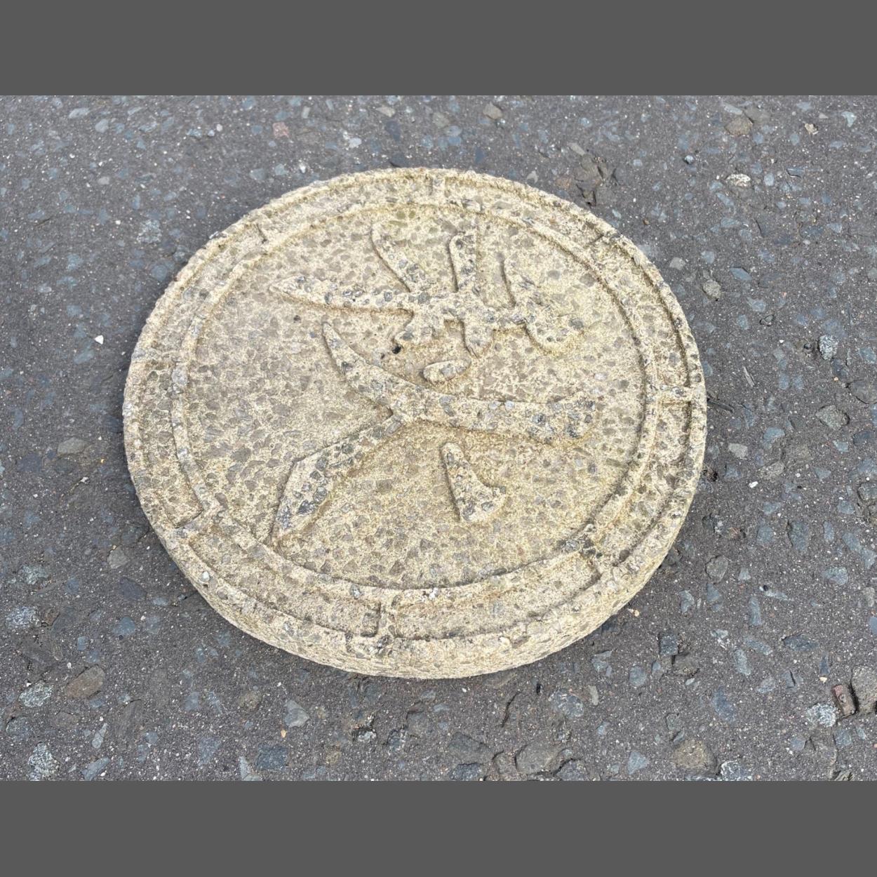An ORIENTAL themed garden concrete stepping stone or garden border feature - 12" diameter approx