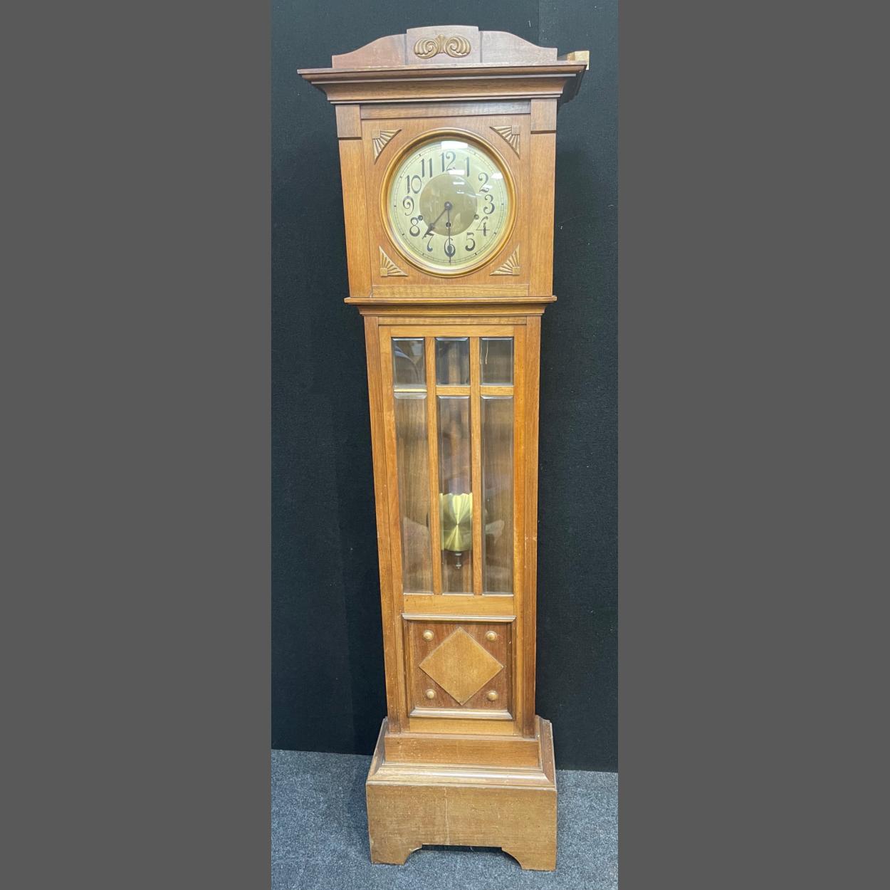 A circa 1960's oak cased GRANDMOTHER floor clock with pendulum - height 180cm tall approx in working order