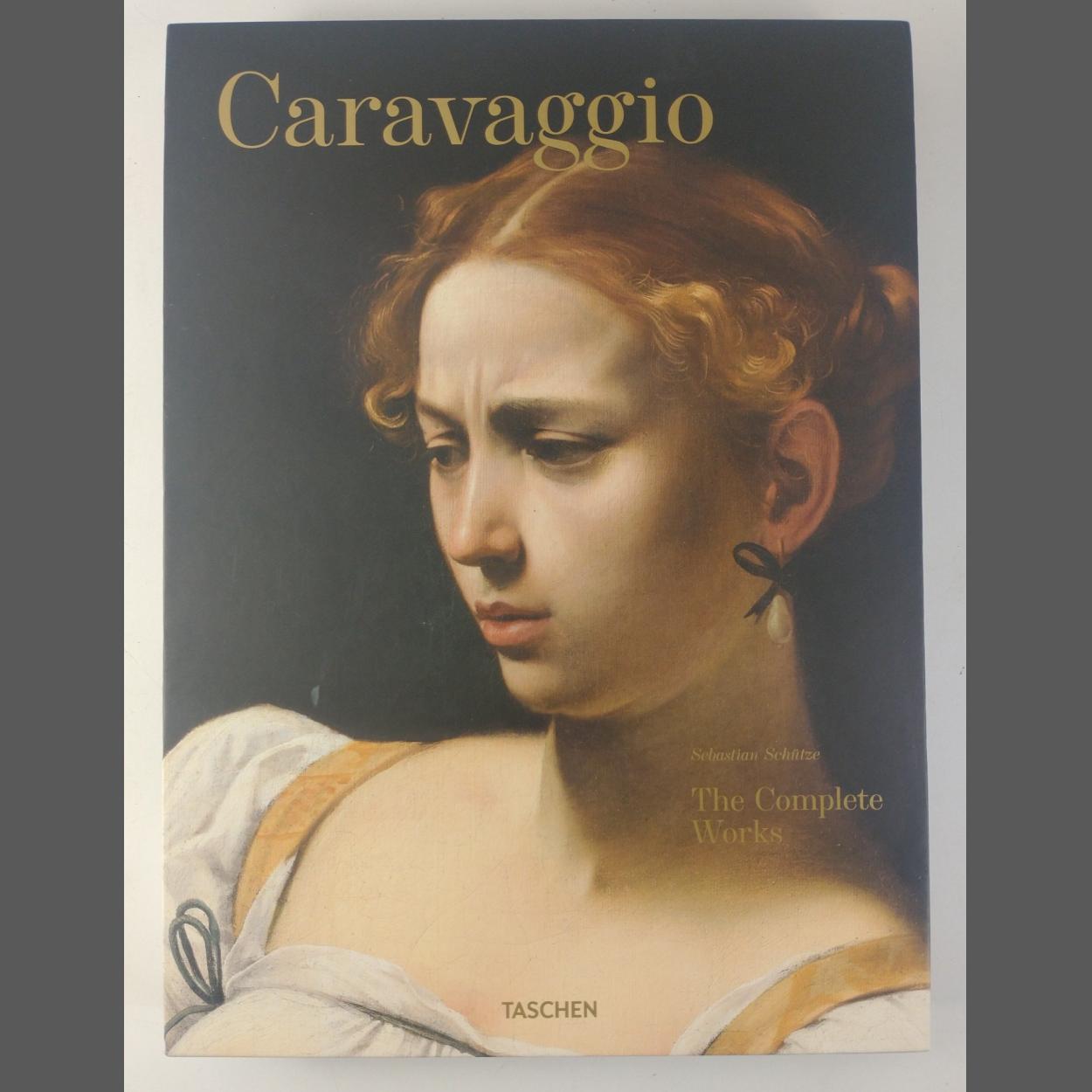 CARAVAGGIO: The Complete Works by Sebastian Schütze, part of the prestigious series of art books published by TASCHEN comprising 306 pages. The book comes in a slip case which measures 39x28cm approx, copyright 2015. The book and slipcase are in excellent condition with many top quality colour plates of the artist's work.