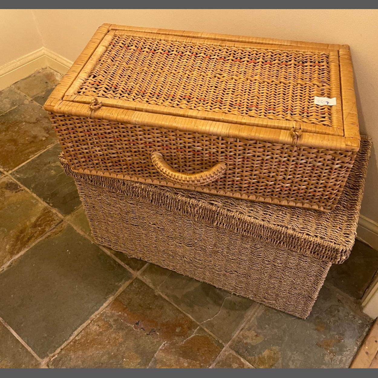 Two medium sized storage baskets, one was an ex picnic basket