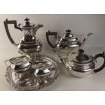 A collection of good quality silver plate to include a WALKER & HALL coffee pot and a matching teapot, sugar bowl and cream jug along with a similar unmarked tea pot and a pierced 28cm tray by GC & Co.