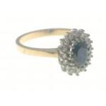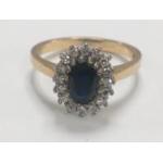 A 375 gold ring with oval shaped Sapphire and diamond surround Size M, gross weight 3.2g approx