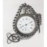 A silver pocket watch with Albert. 112g gross weight watch in working condition,