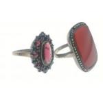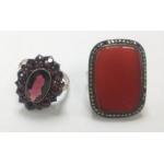Two silver rings. One with Red stone with marcasite 2.5cm size O/P and the second ring with an oval shaped red stone size N. Total gross weight 11g approx