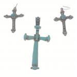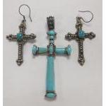A silver mounted 7.5 x 4cm approx turquoise cross with matching earrings 4 x 3cm. Gross weight 22g approx.